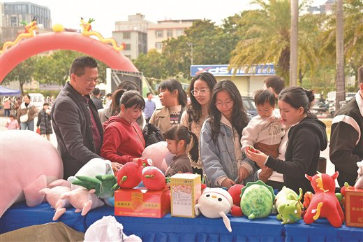 • “策马运河迎新春 畅购钦州好年货”新春消费季系列活动现场,市民购买毛绒玩具。连信友/摄